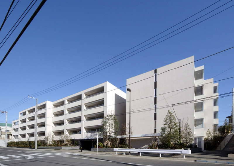 東急田園都市線沿線の最期?といわれる区画整理事業エリア内で、時同じくマンション建設ラッシュ。激戦区で他に惑わされることなく、華美なデザインでごまかすことなく、スマートに完成したと自負しています。また、道路を挟み2棟の構成はワンショットではありますが新しい街並みを形成しています。